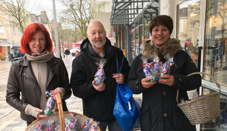 Trotz Schnee, Frost und Regen verteilten CDU-Ortsvorsitzende Nicole Voß, Hauptausschussvorsitzender Walter Bödeker (CDU) zusammen mit Andrea Tschacher (MdL) zahlreiche Osterhasen in der Geesthachter Einkaufsstraße und auf dem Wochenmarkt. Kleine und große Passanten freuten sich über die Osteraufmerksamkeit. In den nächsten Wochen plant der Ortsverband zahlreiche Aktionen, um mit den Bügerinnen und Bürger weiter ins Gespräch zu kommen.