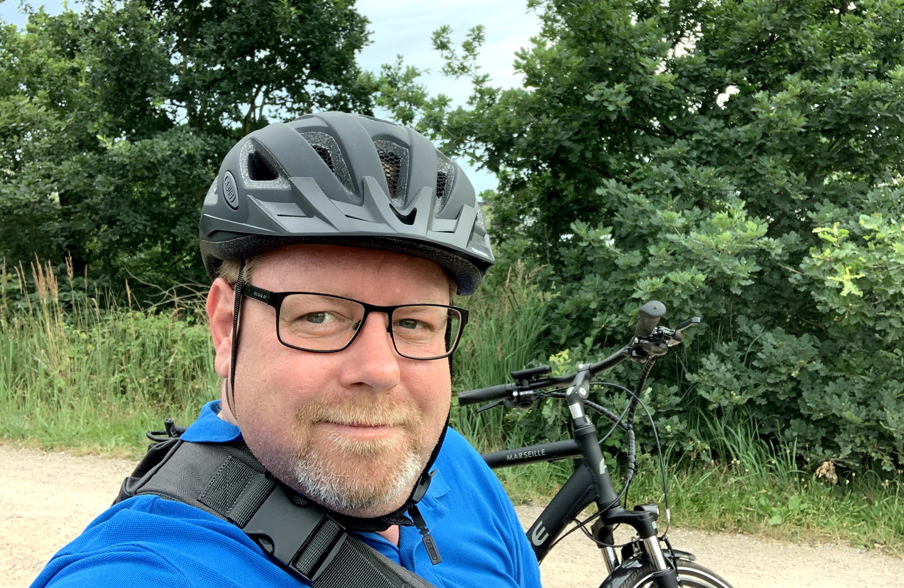 „In den letzten Jahren habe ich - wie viele andere – das Radfahren wiederentdeckt. Dabei hatte ich zunächst auch keinen Fahrradhelm getragen. Familienangehörige, Mitglieder des ADFC und auch Mitarbeiter des Rettungsdienstes haben mich zuletzt zum Tragen eines Helmes überzeugt“, berichtet Minge.