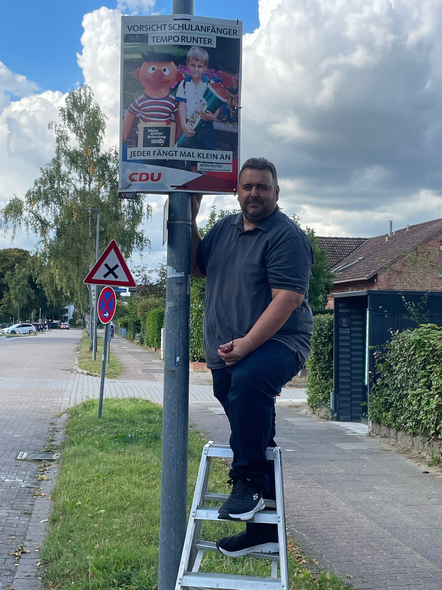 Schon im Jahr 2003 startete die Junge Union die Kampagne „Vorsicht Schulanfänger – Tempo runter“. Im Rahmen dieser bewährten Tradition hat der CDU-Ortsverband eigene Plakate gestaltet, die auch in diesem Jahr besonders ins Auge fallen: Zu sehen sind die Geesthachter CDU-Mitglieder Arne Ertelt, Björn Reuter und Alexander Streiber, jeweils abgebildet an ihrem ganz persönlichen Einschulungstag.